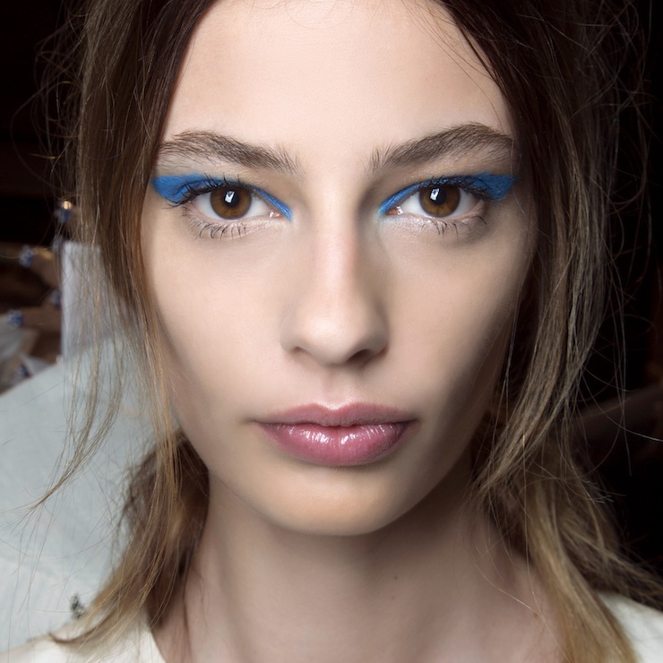 Если ты просто обожаешь подводку для глаз, попробуй использовать ее этой весной нестандартным образом, более графично или просто сменить ее цвет. Визажисты 3.1 Phillip Lim и Moschino предлагают применить голубую или активнее подводить нижнее веко для создания ретро-эффекта. Не стесняйся, кошачий взгляд украсит любую девушку!